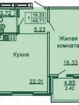 площадь 49,97 кв.м 6 этаж