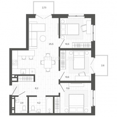 3-комнатная квартира