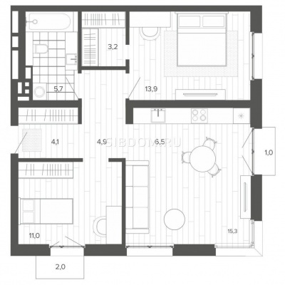 площадь 69,1 кв.м. 3 этаж